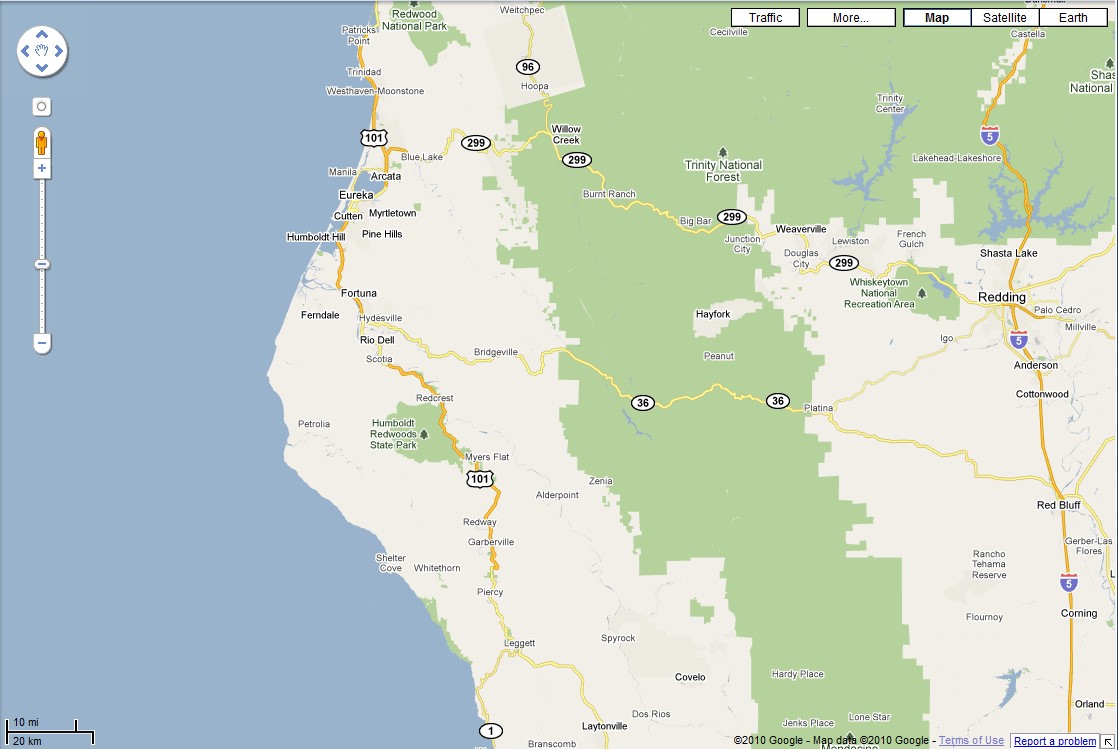 with a list of our "gonna-sees" It's about 280 miles from SF to Eureka. When you reach Willits, you are just past half way there |