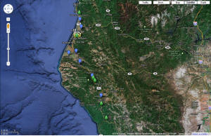 | Overview maps of our trip from south to north. Once north of San Francisco we will be on US-101 all the way. | ||